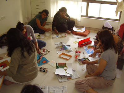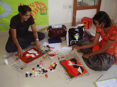 Our Creative Corner craft workshop received a wonderful response this Summer. The kids as always amazed us with their fresh and new ideas. They took home lampshades, fabric paintings, handcrafted place mats, flowers, decorated thalis, tie and dye handkerchiefs and so much more in the one month they spent with us. Do enjoy the pictures! And we hope to see all of you at our regular Craft Club that meets every Saturday from the month of June2010.
