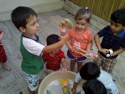 There is no better way to keep healthy than having a good bath!! And just so that our little ones would remember this, we got them to bring in their favourite dolls from home and give the dolls a good cleaning. That was a wonderful morning…loads of splashing in the water, dolls all clean and smelling of Johnson’s baby soap and the children with their bright and happy laughter!