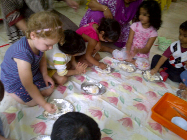 The kids have learnt to wish each other “Eid Mubarak” today and we also had a great time making little coconut and condensed milk milk ‘laddoos” or “modaks”, Ganesha’s favourite sweet!! Some of the children even carried one or two home for their mommies!